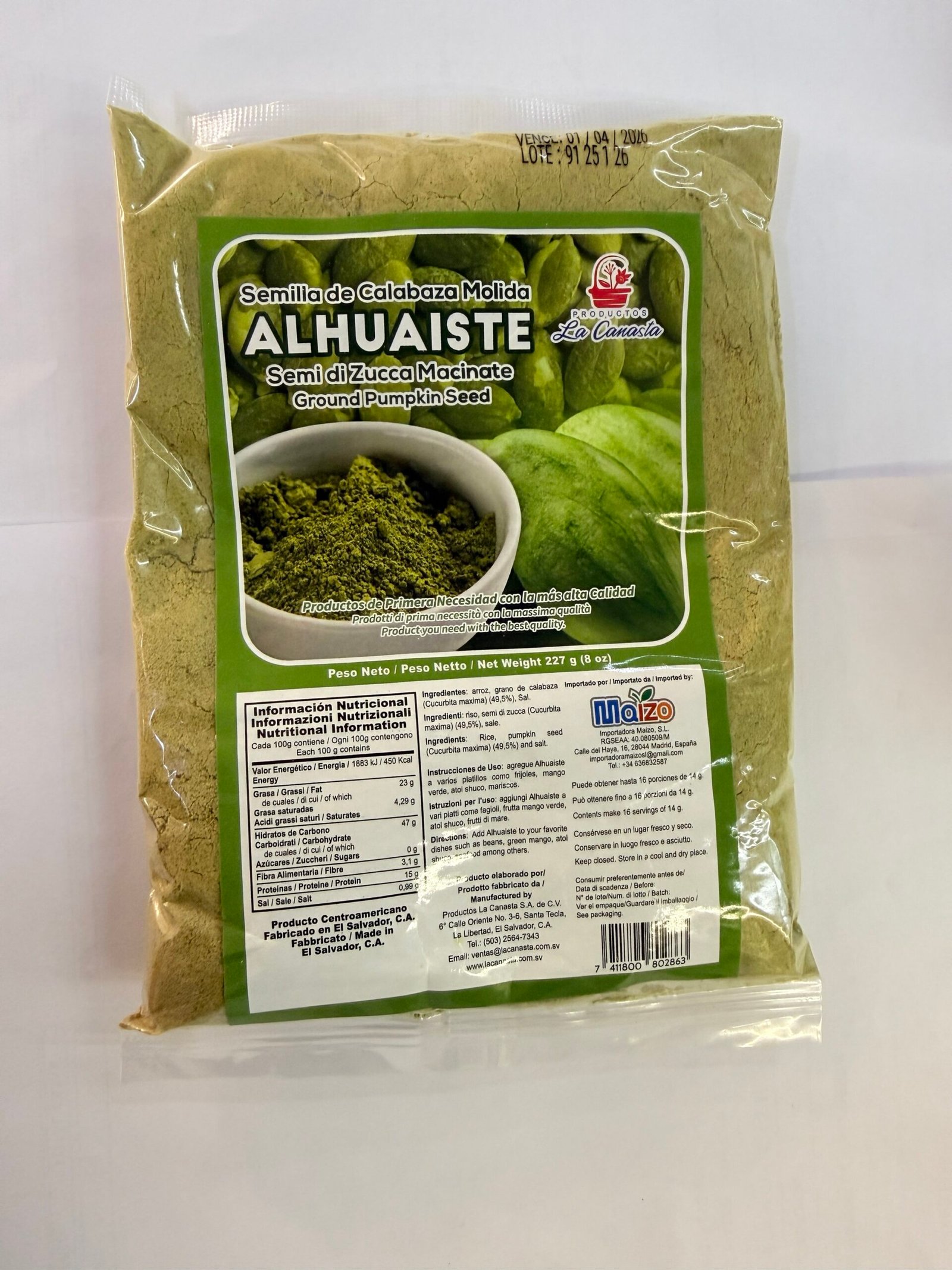 Alhuaiste semilla de calabaza molida ( La canasta )227gAlhuaiste semilla de calabaza molida ( La canasta )227g